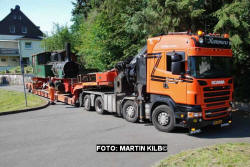einem Tieflader nach Limburg auf den Platz der Firma Schuy
